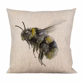 Kuddfodral Nyponros/Humla från småländska Emma Sjödin Design. Tillverkat i 100% linne med Humla på ena sidan och Nyponros på andra sidan.